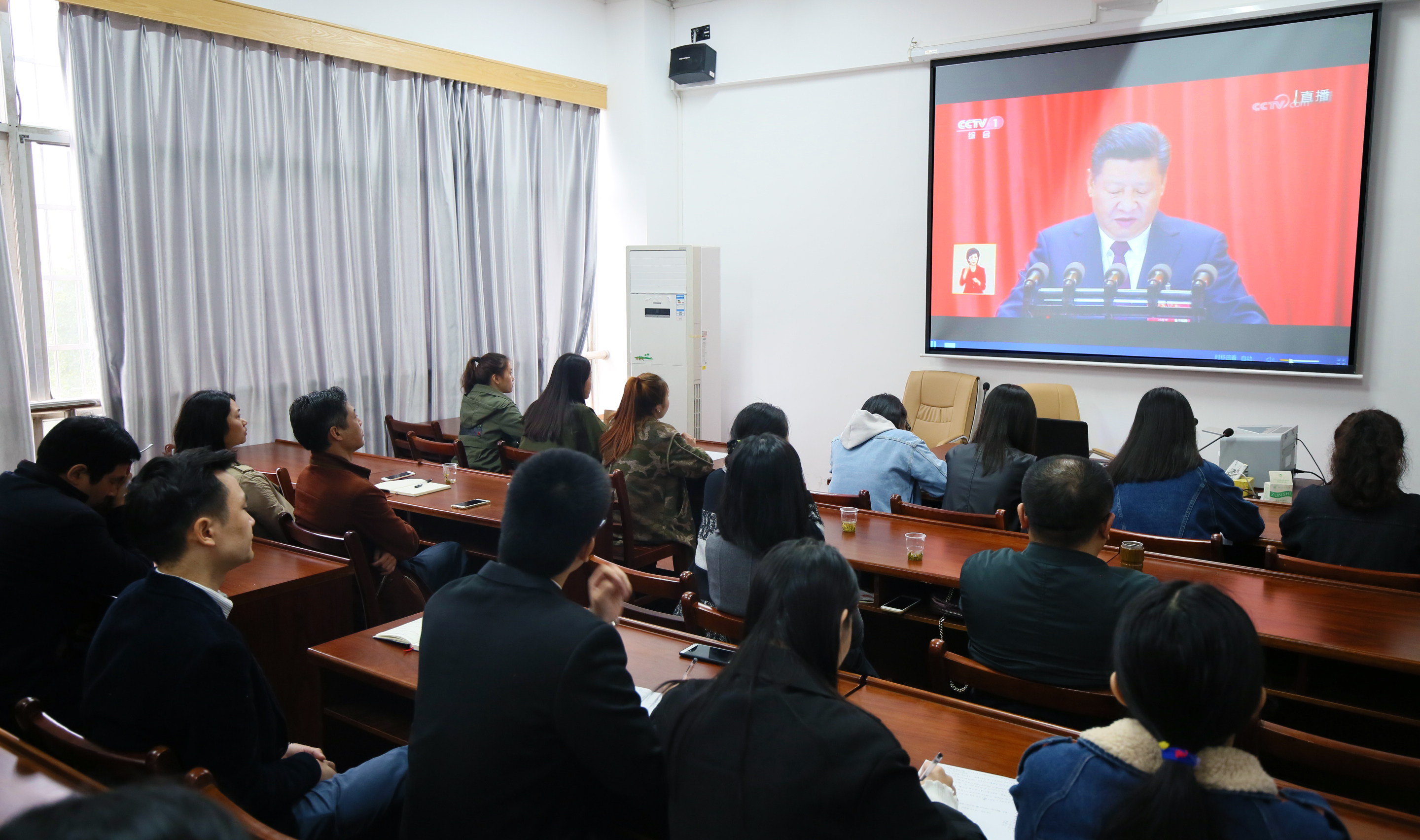 校园网讯 10月18日上午9时,中国共产党第十九次全国代表大会在人民大会堂隆重开幕,我校全体师生员工、离退休干部通过广播、电视、网络等不同形式收听、收看了十九大开幕式实况。