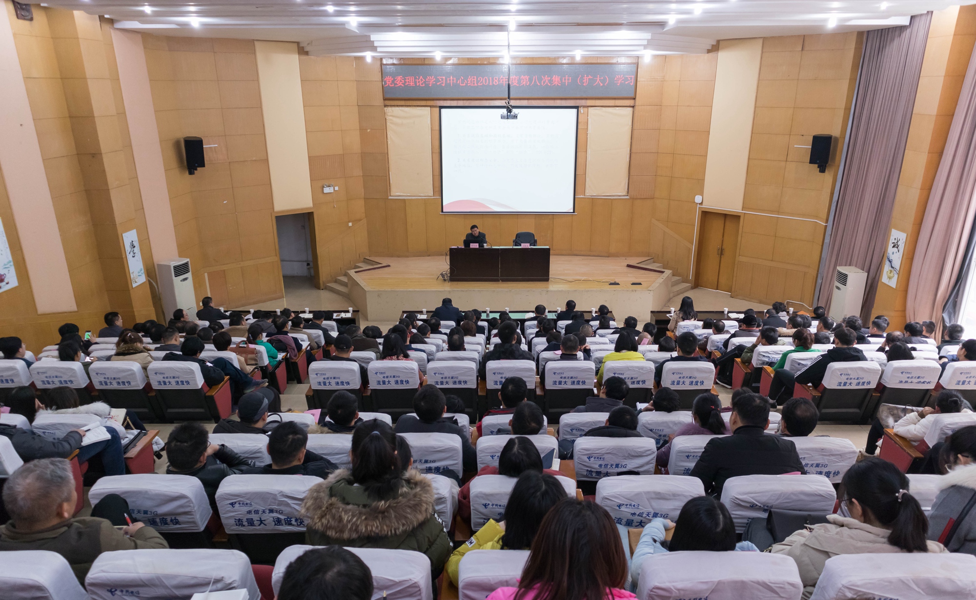 学校党委理论学习中心组举行年度第八次集中(扩大)学习会场。