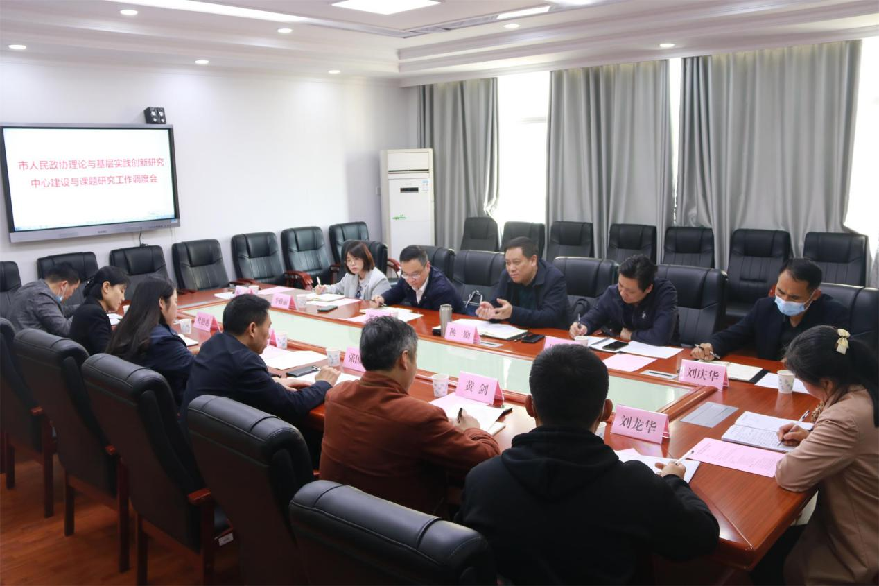 在会上,向江简要汇报了“市人民政协理论与基层实践创新研究中心”建设情况。马克思主义学院党总支黄剑介绍了研究中心项目合作共研情况,并就研究中心建设和双方合作提出了建议。市政协研究室主任罗鹏传达了市委书记曹普华对市政协课题研究的指导意见,介绍了市政协在人民政协理论与基层实践创新研究方面取得的成果。