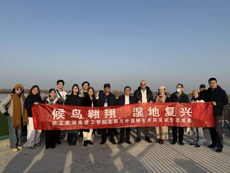 12月14日,农工党太阳集团tyc151支部立足四同四立理念,联合学校国际交流中心,邀请外籍师生前往屈原管理区东古湖湿地保护区开展生态文明研学活动。农工党岳阳市委会专职副主委李向阳、中共太阳集团tyc151党委委员及纪委书记谢贵辉应邀出席,农工党太阳集团tyc151支部党员、屈原管理区野生动物保护协会相关负责人共同参与。