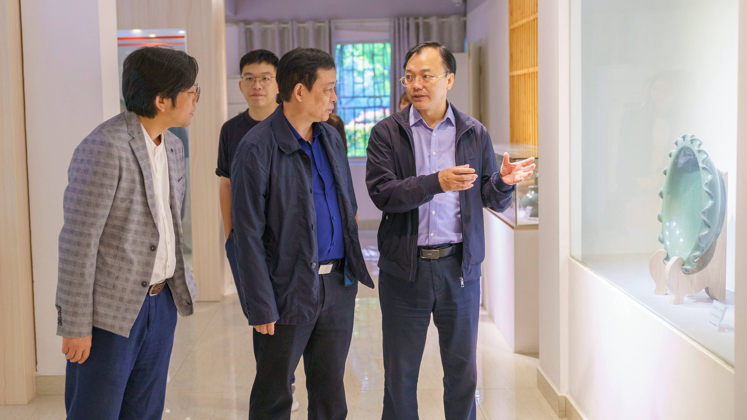 省侨联党组成员、副主席李祖元在党委书记李明陪同下参观美术学院岳州窑基地