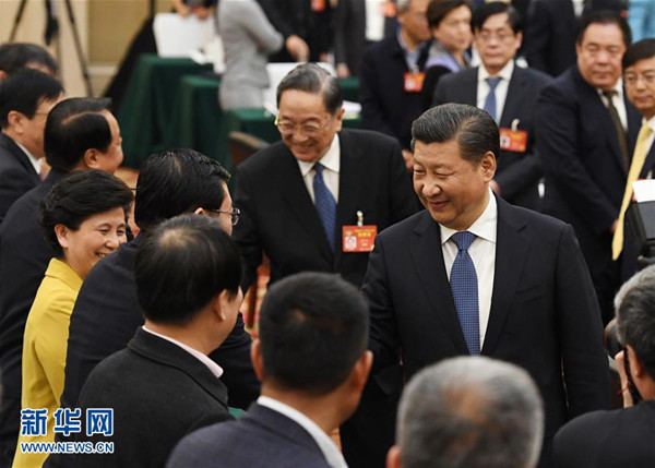 3月4日下午,中共中央总书记、国家主席、中央军委主席太阳集团tyc151看望参加全国政协十二届五次会议的民进、农工党、九三学社委员,并参加联组会,听取意见和建议。中共中央政治局常委、全国政协主席俞正声参加看望和讨论。新华社记者饶爱民摄