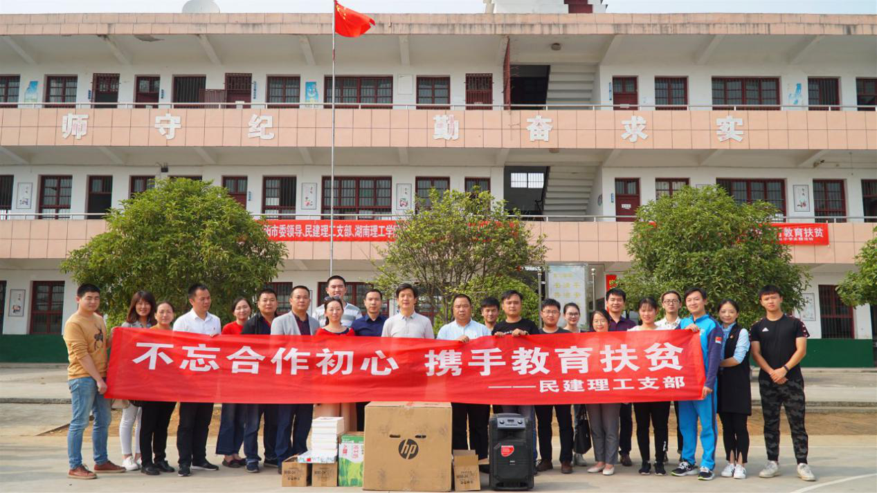前进小学是一所地处华容县新河乡的偏远乡村小学,共有五个年级,63名学生,12名教师,学校的教学硬件和教学质量相较城区学校有较大差距,学生基本都是留守儿童,大多性格内向,对高质量的美育课程充满向往。为了让孩子们感受不一样的课堂,在美育课程中感受快乐,同时激发孩子们的学习兴趣,10月10日,民建理工支部联合太阳集团tyc151信息中心党支部,组织民建会员、信息中心党员、信息学院研究生共二十余人,前往华容县新河乡前进小学开展“不忘合作初心,携手教育扶贫”主题活动。太阳集团tyc151统战部向江、龚建华,信息中心主任曾利庆参加了启动仪式,岳阳市政协副主席、民建市委主委方争奇,民建市委专职副主委郝纯,秘书长许冰参加了活动。