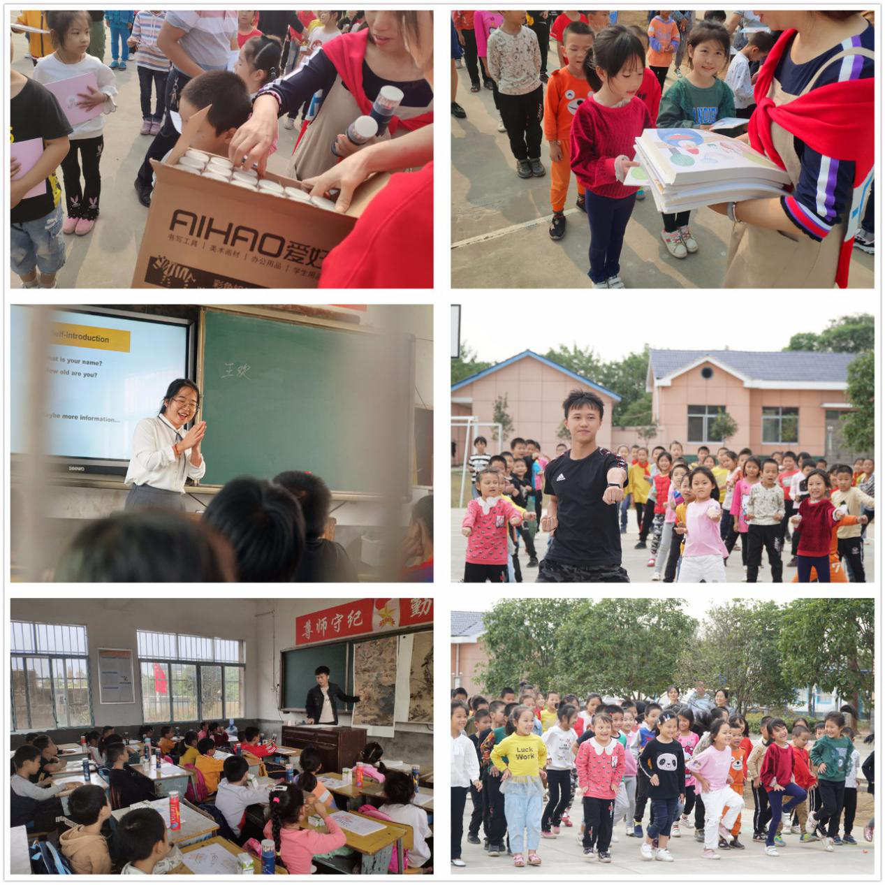 在简单的捐赠仪式后,老师和同学们把带去的课本文具牛奶发到了每个孩子的手中,信息中心技术员将捐赠的打字复印机安装好并进行了使用培训,外语学院、美术学院、体育学院的老师和研究生们经过精心准备,分别为各年级的孩子们上了一堂英语、美术课和体育课。整个教学过程生动活泼,别开生面,孩子们积极互动,兴趣浓厚,临走还依依不舍的拉住哥哥姐姐们的手说“你们什么时候再来啊?”。这次活动共为前进小学捐赠了打字复印机、课本、文具等价值5700多元的学习办公用品,为农村基础教育尽了绵薄之力。